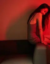 苗圃侧身立于光影交错间,一袭轻薄纱衣如流云般披拂于身,朦胧质地与细腻肌肤相映,勾勒出优雅而神秘的侧影轮廓。