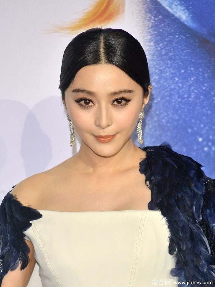 范冰冰佩戴垂坠耳环,身着亮片礼服的半身造型,星光熠熠